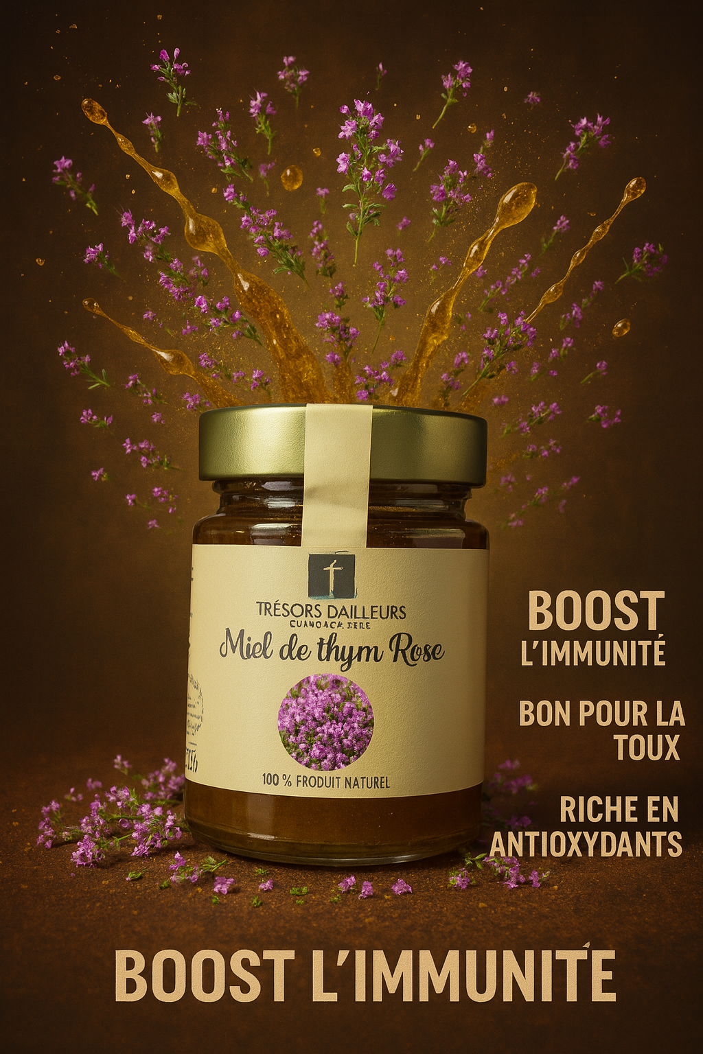 🍯 Miel de Thym 100% Naturel – Trésors d’Ailleurs 🌿