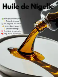 Huile de nigelle 100 ml : réputée pour soutenir l’immunité, la digestion et la vitalité générale.