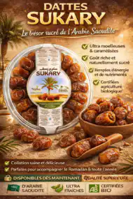 Dattes Sukary d’Arabie Saoudite – 600 g : source naturelle d’énergie, riches en nutriments, parfaites pour la rupture du jeûne.