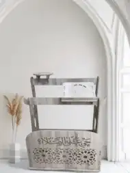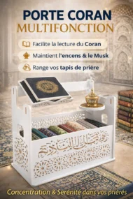 Optimisez votre coin prière avec ce support multifonction élégant et pratique, conçu pour accueillir tapis de prière, Coran et encensoir en un seul espace. Sa couleur beige sobre s’intègre parfaitement à tous les intérieurs, du plus classique au plus moderne.
