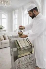 Support pour tapis de prière, Coran et encensoir – Blanc