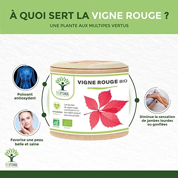 Vitis vinifera var. tinctoria, possède des propriétés particulières dans les taches rouges de ses feuilles. Il s’agit des anthocyanes, ce sont des facteurs vitaminiques puissants, c’est-à-dire qu’ils protègent et tonifient les capillaires et les veines