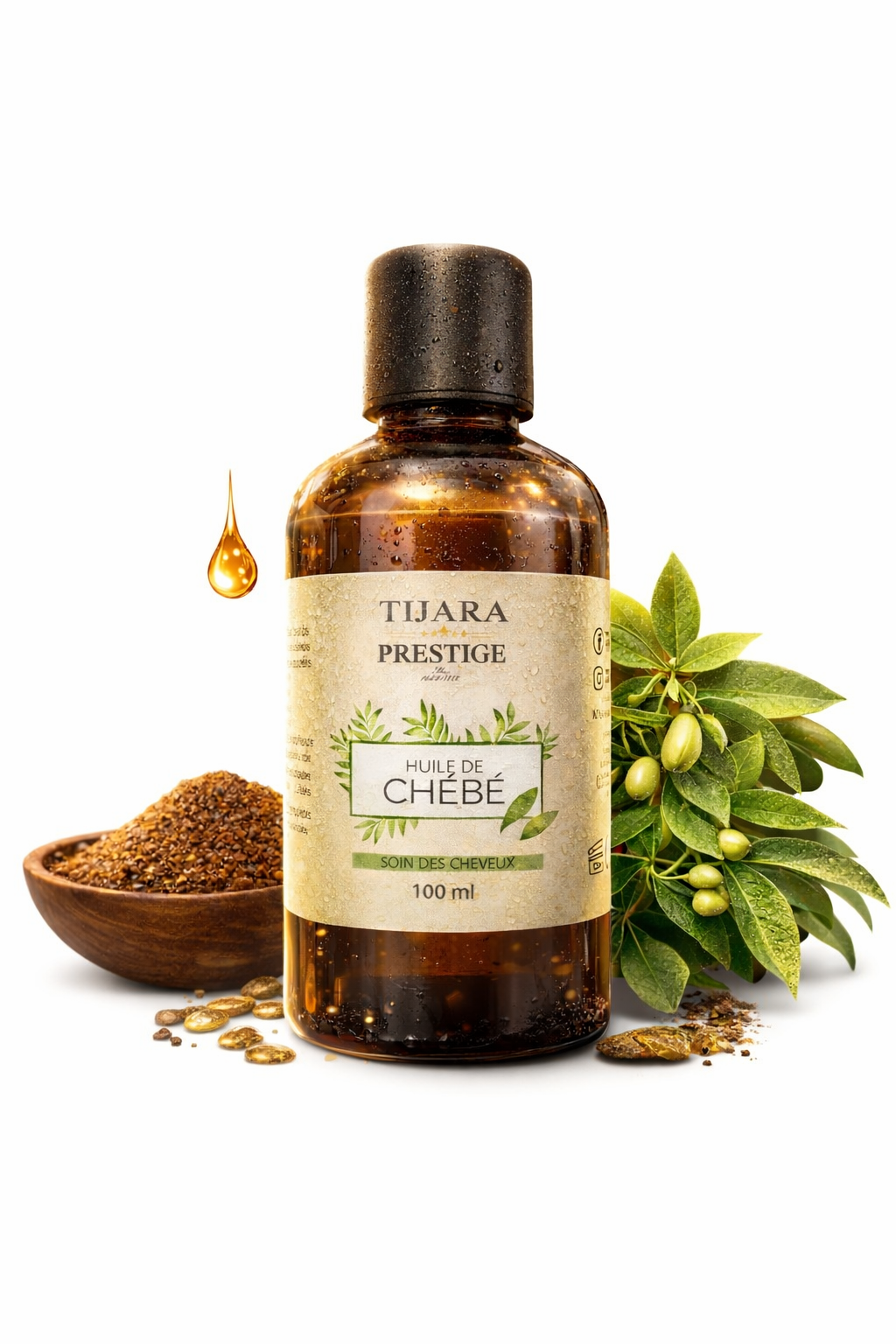 Huile de Chébé soin capillaire naturel qui nourrit, renforce et protège les cheveux. Idéale pour limiter la casse, préserver la longueur et apporter douceur et brillance au quotidien.