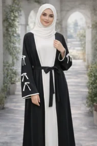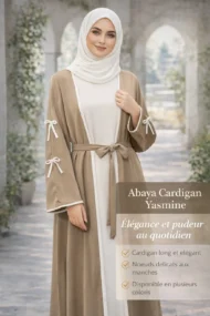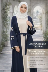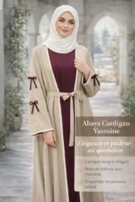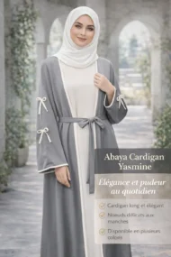 Découvrez notre ensemble Abaya Cardigan 3 pièces, une tenue élégante et complète conçue pour allier pudeur, confort et raffinement.