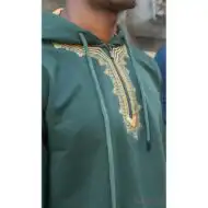 Alliant tradition et modernité, cette tunique à capuche signée Qaba’il est conçue dans un vert profond avec une broderie dorée raffinée sur le col zippé et les poignets. Son tissu confortable et sa coupe moderne font d’elle une pièce idéale pour un style décontracté-chic, en ville comme en vacances. À associer avec un sarouel beige et une paire de sneakers pour un look complet et affirmé.