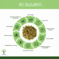 L‘effet diurétique de notre thé va favoriser l’élimination rénale l’eau et aider à réduire l’appétit. Le yerba maté, quant à lui, va avoir une action brûle graisses grâce à la caféine qu’il contient. Enfin, le gingembre va contribuer au confort digestif et participer au contrôle de la glycémie. Pour obtenir des résultats minceur plus rapidement, nous vous conseillons d’associer notre Thé Minceur & Détox Bio à nos gélules de guarana en cure de 2 mois.