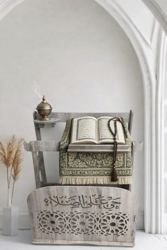 Support pour tapis de prière, Coran et encensoir – Beige